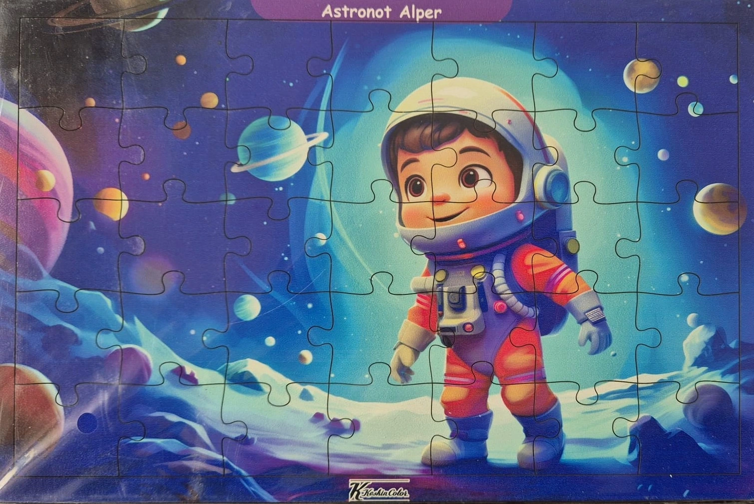 24x30 cm boyutlarındaki bu puzzle, 35 parçadan oluşmaktadır ve Astronot Alper temasıyla tasarlanmıştır.