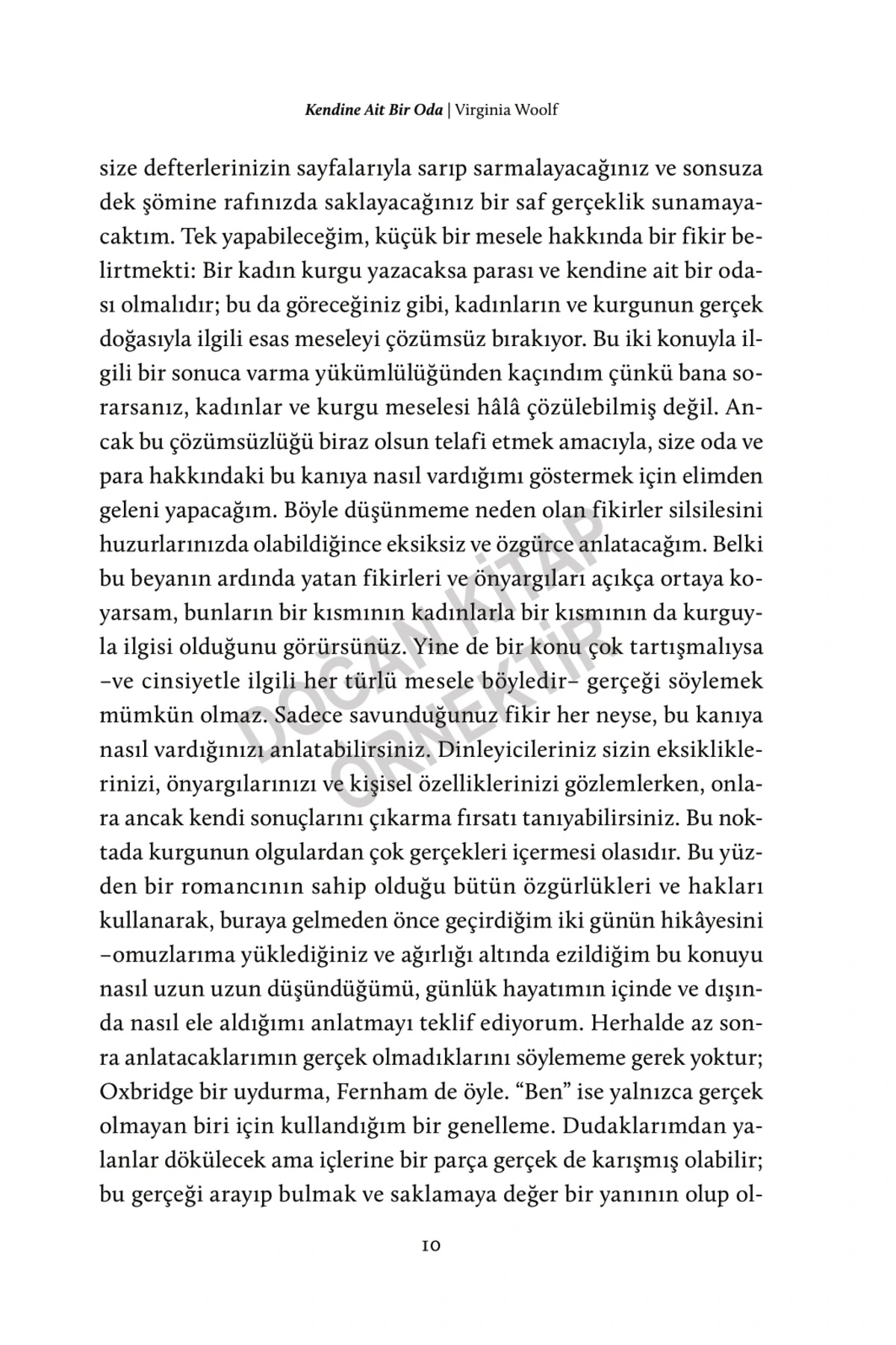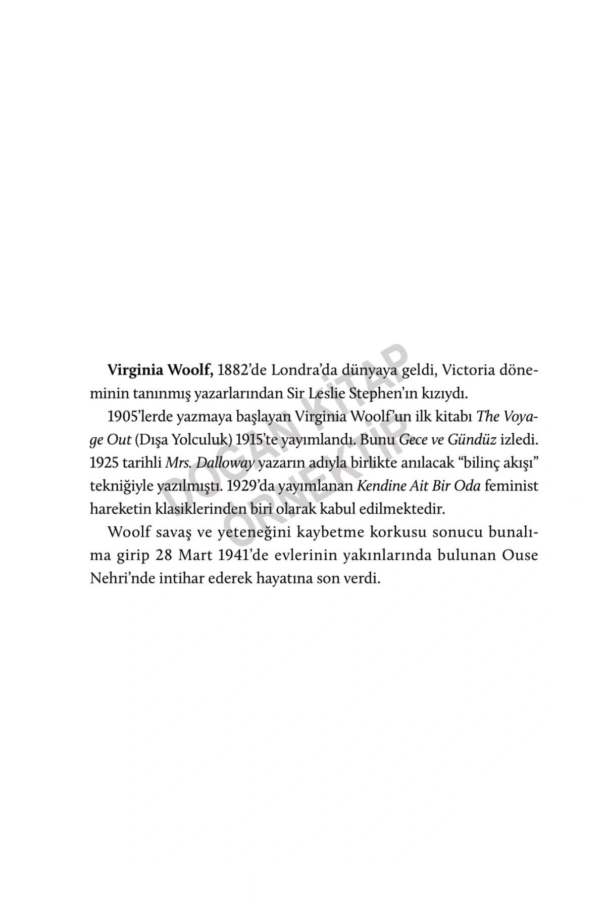 KENDİNE AİT BİR ODA VİRGİNİA WOOLF DOĞAN KİTAP