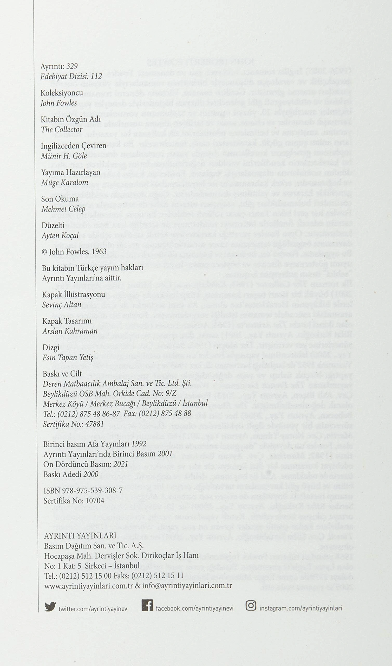 Koleksiyoncu Ayrıntı John Fowles Ayrıntı