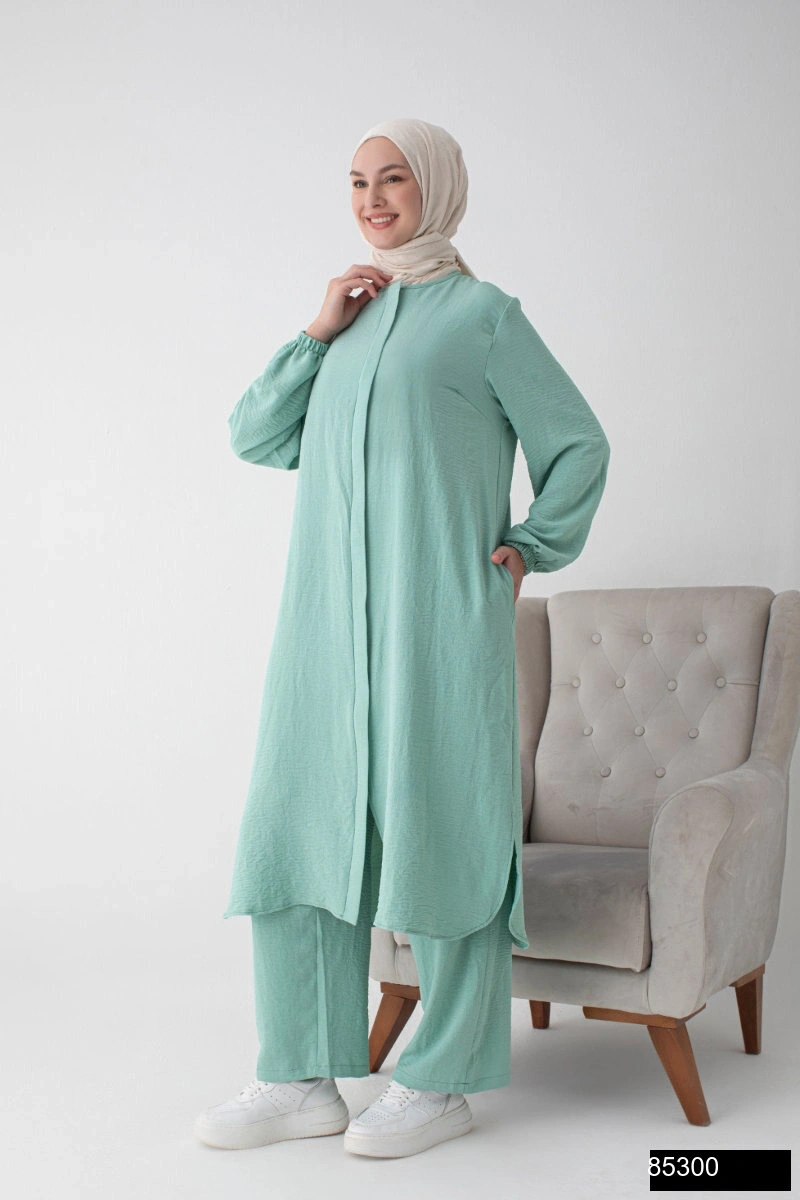 Modamiss Aerobin Kumaş Bayan Hac ve Umre Elbisesi (2 Parça) - Su Yeşili
