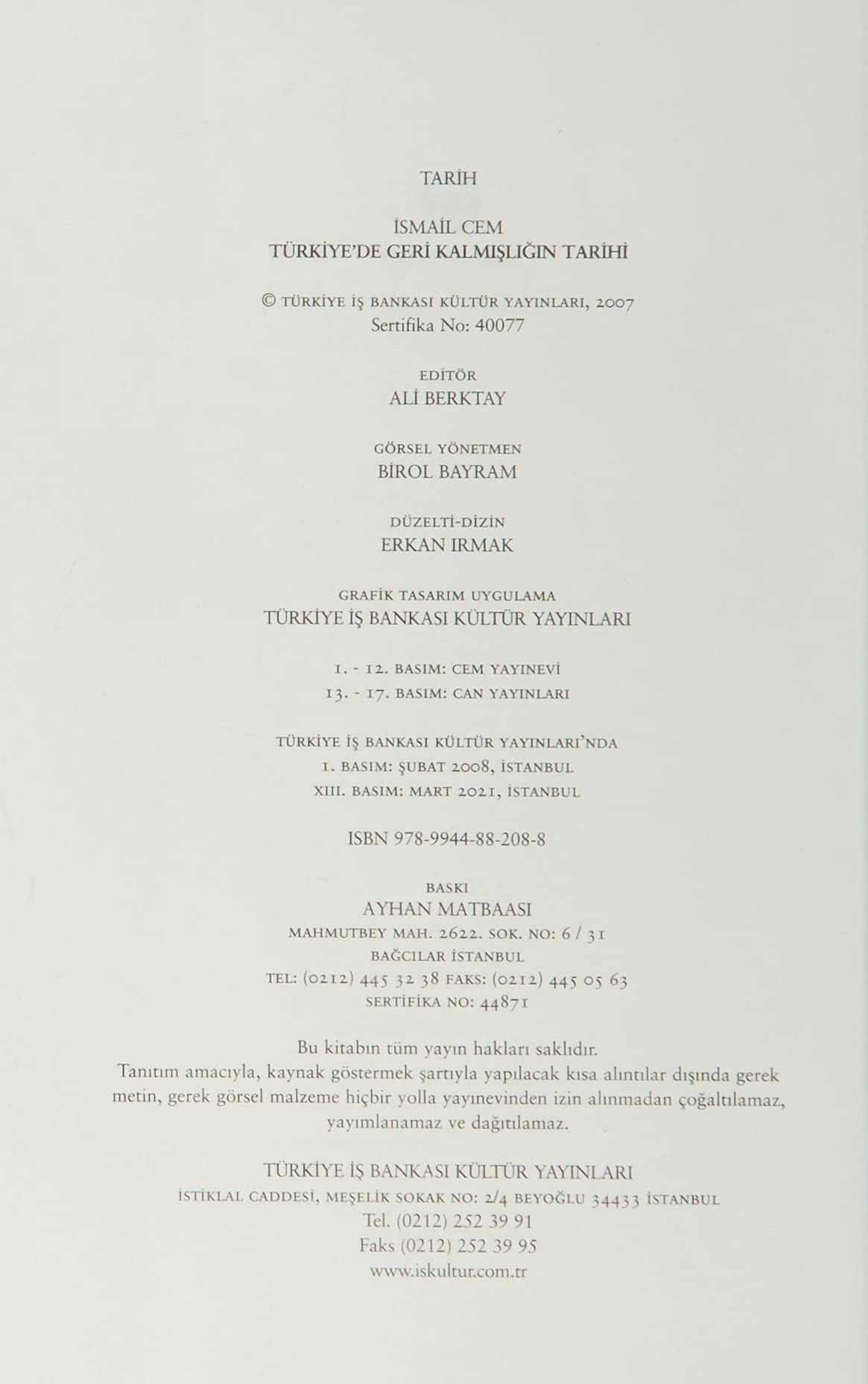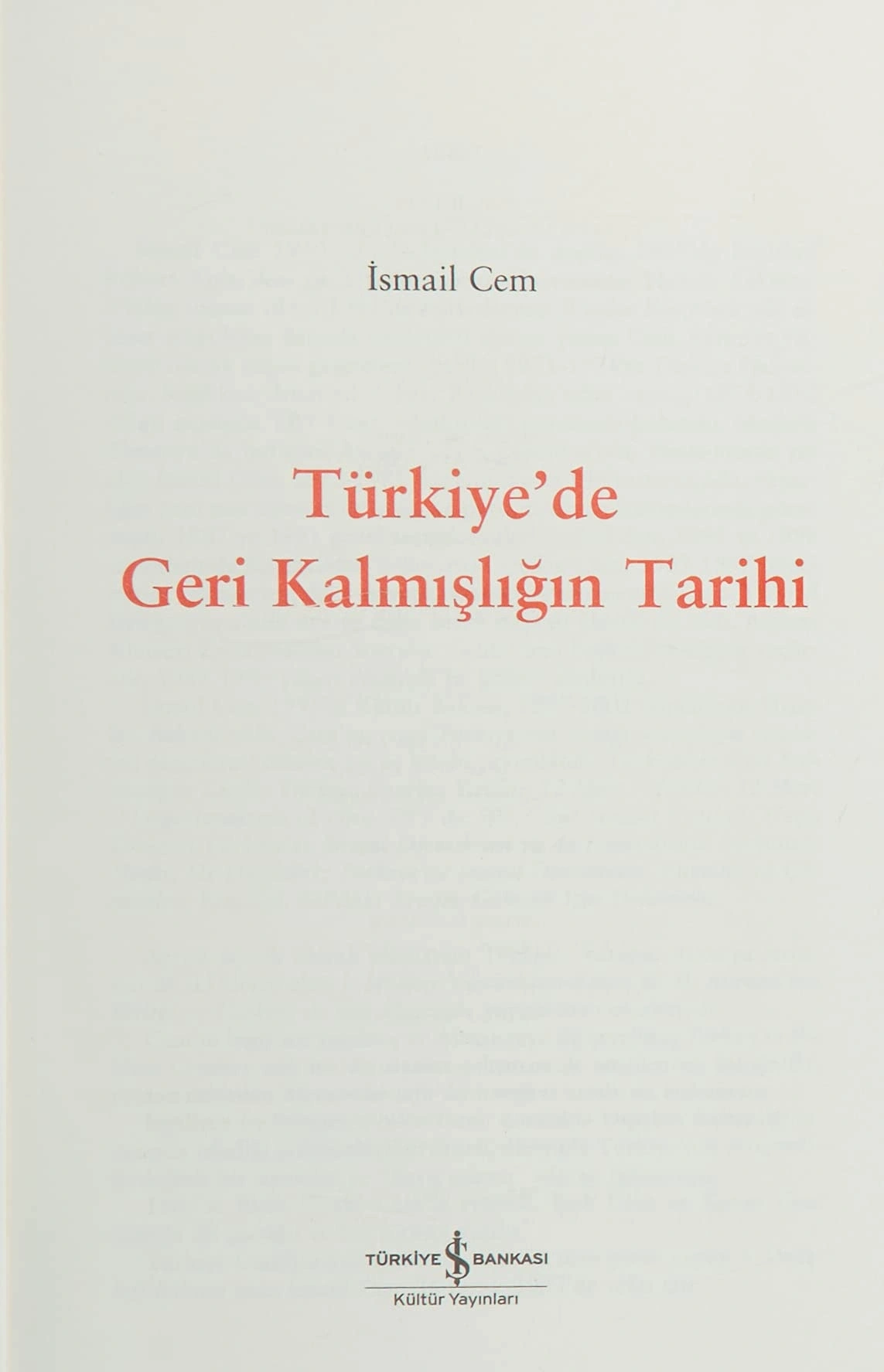 Türkiyede Geri Kalmışlığın Tarihi / İsmail Cem